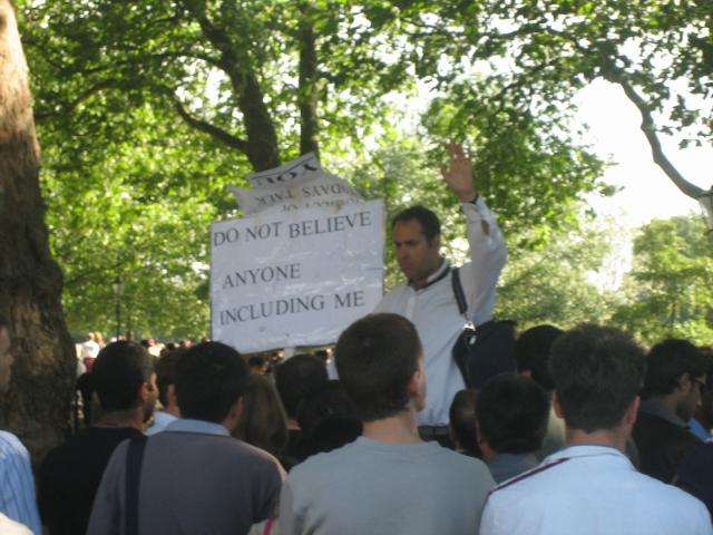 Later that night I met an Episcopalian priest (to whom I later confessed my travel sins) from Virginia. No joke. He's a cool guy and we got down at the California Soul/British Invasion/Best of today's hipster rock/Cute girls running around in 60s style house dresses, dance club. The next day we went to the Tate Modern, another great museum, and to Speaker's Corner. This place is great. All the nuts (and sometimes not so nuts) get up on chairs (I guess soapboxes are passe) and profess their profundities for all to listen and to argue with them.